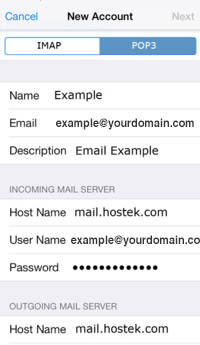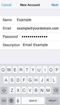 - Tap "Next" in the upper right corner to advance to the detailed account information screen.